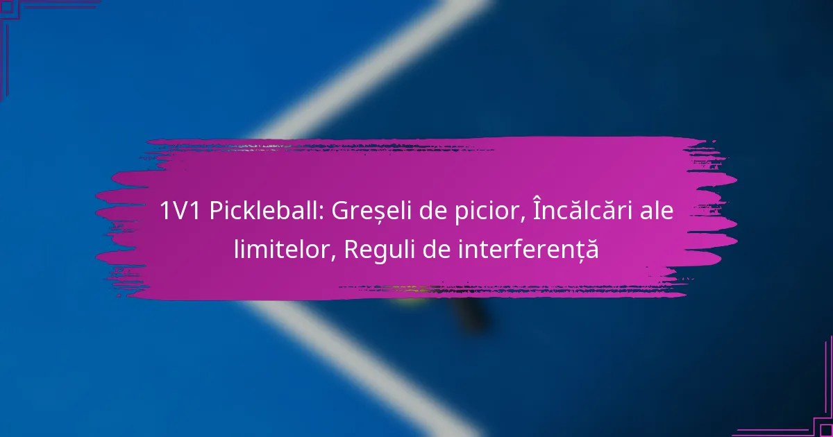 În pickleball 1v1, înțelegerea regulilor referitoare la greșelile de picior, încălcările de limită și interferență este esențială pentru menținerea unui joc corect și competitiv. Greșelile de picior pot duce la pierderea punctelor din cauza plasării necorespunzătoare a picioarelor în timpul serviciilor sau returnărilor, în timp ce încălcările de limită apar atunci când mingea aterizează în afara liniilor desemnate ale terenului. În plus, regulile de interferență ajută la asigurarea faptului că jucătorii nu își perturbă reciproc capacitatea de a juca mingea, promovând o experiență de joc fluidă.