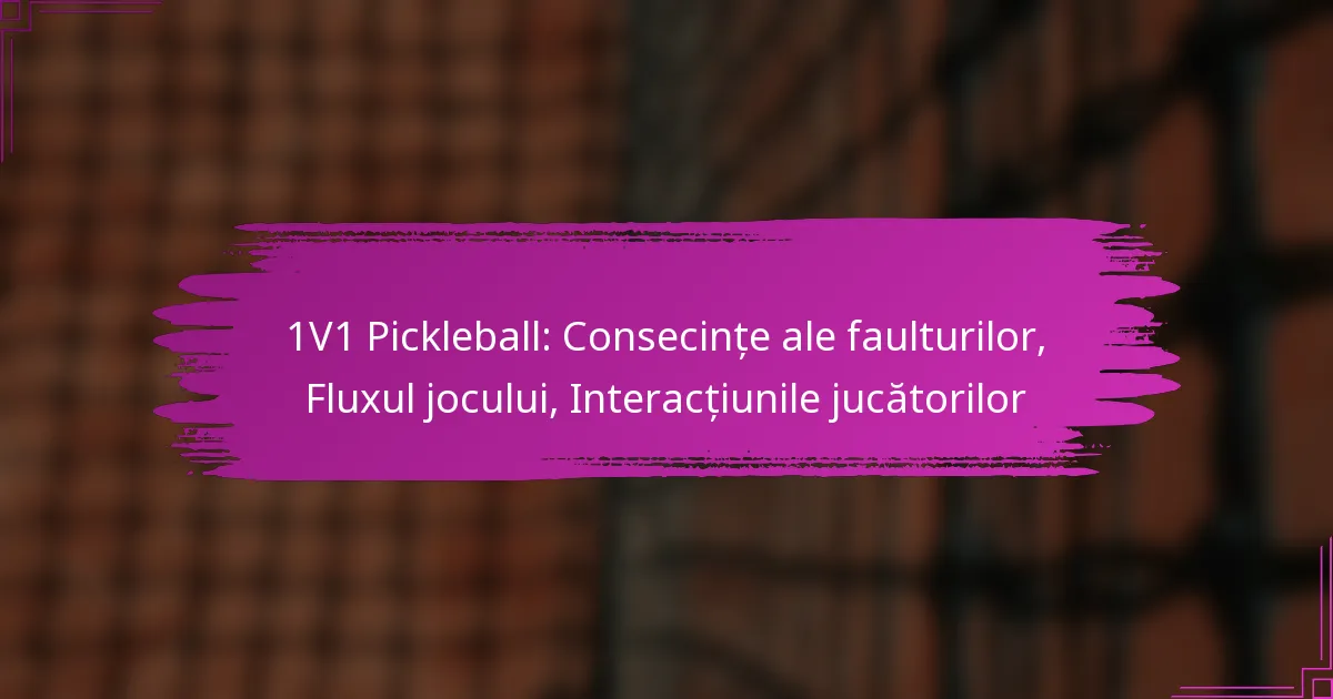 În pickleball 1V1, faulturile pot influența semnificativ desfășurarea jocului și rezultatul final, făcând esențial pentru jucători să înțeleagă tipurile și consecințele acestora. Ritmul jocului este modelat de diferiți factori, inclusiv sistemele de punctaj și interacțiunile dintre jucători, care pot fi perturbate de faulturi. Pentru a asigura o experiență corectă și plăcută, comunicarea eficientă și respectarea sportivității sunt vitale în interacțiunile dintre jucători.