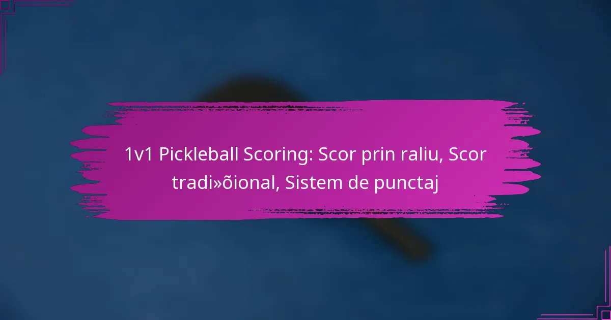 Scorul în 1v1 Pickleball cuprinde diverse metode pentru urmărirea punctelor în meciurile de simplu, ceea ce este esențial pentru jucători pentru a dezvolta strategii eficiente și a spori plăcerea de a juca. Cele două sisteme principale de scor sunt scorul de rally, unde amândoi jucători pot marca la fiecare serviciu, și scorul tradițional, unde doar jucătorul care servește poate câștiga puncte. Înțelegerea acestor sisteme ajută jucătorii să își adapteze jocul și să își maximizeze avantajul competitiv.
